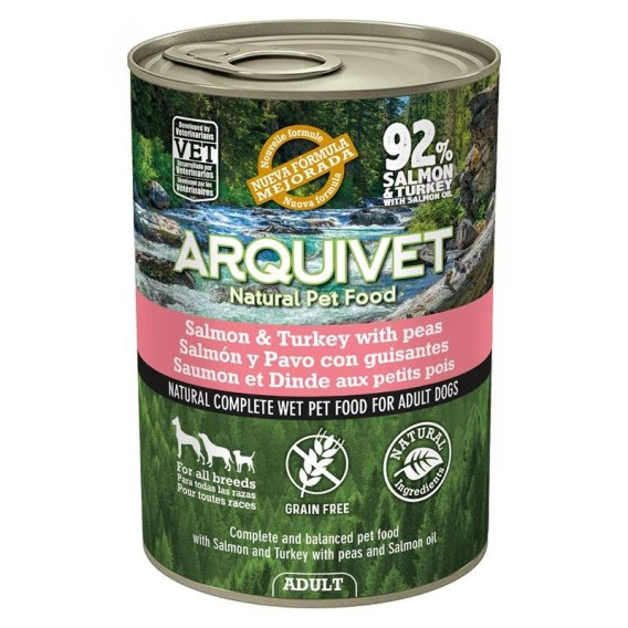 Kompletna karma mokra dla psów wszystkich ras. Na bazie łososia i indyka z dodatkiem oleju z łososia. 100% naturalnych składników. Bez zbóż. Zbilansowana pod względem odżywczym receptura opracowana przez lekarzy weterynarii i dietetyków. Gotowana na wolnym ogniu, aby zachować wszystkie składniki odżywcze.