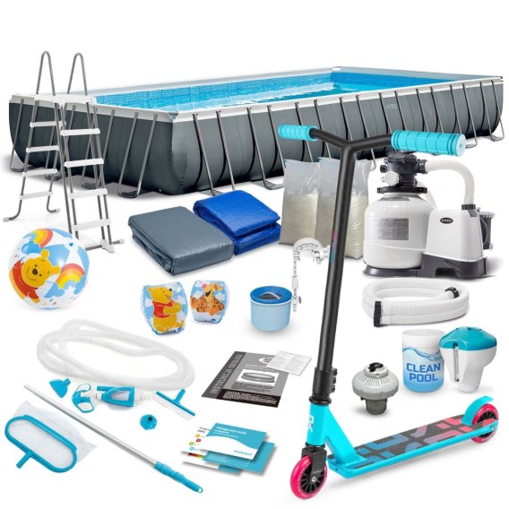 Basen ogrodowy stelażowy 975 x 488 x 132 cm 21w1 INTEX 26374 + hulajnoga GRATIS