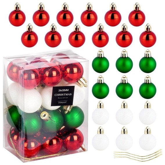 Bombki choinkowe nietłukące czerwone zielone białe 3 cm 24 szt.
