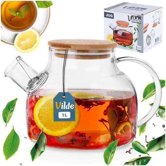 Dzbanek do Serwowania Kawy Herbaty Szklany z Sitkiem Wylewką VILDE 1 l