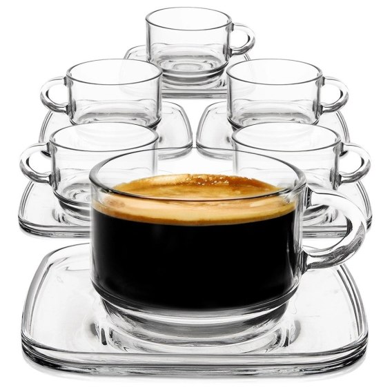 Filiżanka ze spodkiem szklana 250 ml 6 szt.