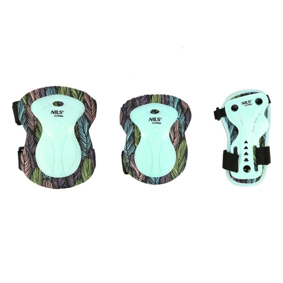 H727 Nils Extreme to zestaw ochraniaczy na nadgarstki, łokcie i kolana. Wykonany z wysokiej jakości materiałów. Skorupa zaprojektowana z mocnego i lekkiego tworzywa, które w maksymalnym stopniu zabezpieczają nadgarstki, łokcie i kolana przed urazami.. Wszystkie ochraniacze wyposażone są w zapięcie na rzepy, dzięki czemu utrzymują ochraniacze we właściwym miejscu. Zaprojektowane tak, aby użytkownik czuł się nie tylko bezpiecznie i komfortowo, ale również stylowo dzięki oryginalnej kolorystyce i trendowych wzorach.