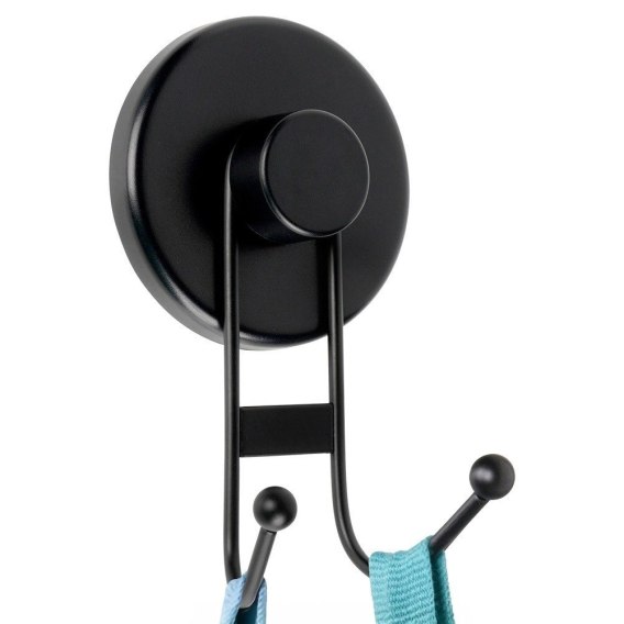Wieszak na przyssawkę o uniwersalnym zastosowaniu. Posiada dwa haczyki, które pozwolą na komfortowe odwieszenie ręczników. Wykonany z wytrzymałych materiałów. Ma uniwersalny wygląd i będzie pasował do każdego wnętrza. Znajdzie wiele zastosowań w domu. Przed przyklejeniem należy upewnić się, że powierzchnia, na której przyssawka ma być użyta, jest gładka i czysta.