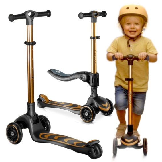 Hulajnoga trójkołowa dla dzieci balansowa siedzisko Nukido Flippo - złota