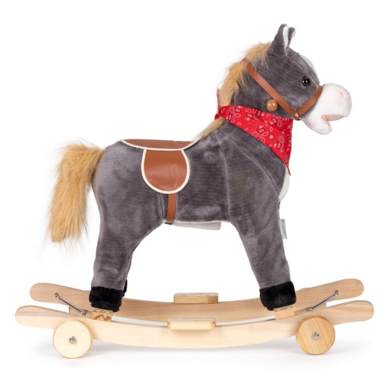 Koń na biegunach to zabawka-marzenie wielu dzieci, bawią się nią chłopcy i dziewczynki, starsi i młodsi. Każdy maluch chce mieć pluszowego konia, przyjaciela do zabaw w domowym zaciszu. Dzięki wielu detalom jak siodło, strzemiona czy wodze, zabawka przeniesie dziecko w świat, dzikiego zachodu, czy też zawodów konnych i sprawi, wiele radości małym fanom jazdy konnej.