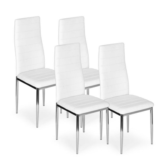 - DESIGN - bbiała kolorystyka poszycia i chromowane nogi sprawiają, że krzesła prezentują się bardzo elegancko i nowocześnie.