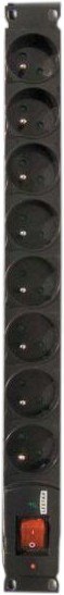 Listwa zasilająca przeznaczona do szaf rackowych 19" posiadająca 8 gniazd z uziemieniem z podwyższoną ochroną 3 linii zasilającej, resetowalny bezpiecznik 10A, możliwość ułożenia przewodu zasilającego w 4 kierunkach oraz wyłącznik, który jest zabezpieczony przed przypadkowym wyłączeniem.