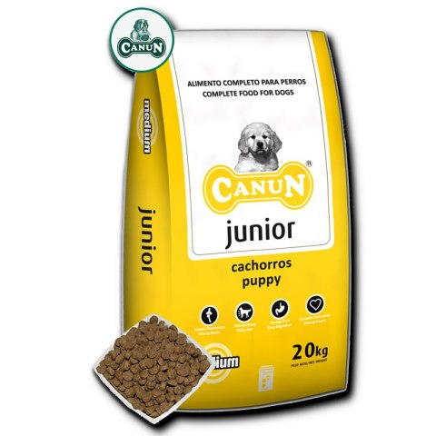 Szczenięta i ich matki potrzebują pokarmu kompletnego, zbilansowanego oraz łatwotrawiennego, by szybciej rosnąć oraz lepiej przechodzić okres połogu. Naprzeciw tym zadaniom wychodzi Canun Junior, odpowiedni zwłaszcza dla szczeniąt psów ras dużych (od 6-go do 12-go miesiąca życia) o potrzebie szybszego wzrostu, jak również dla suk w ciąży oraz karmiących. W skład karmy wchodzą: mięso drobiowe, łosoś, zboża (ryż), oleje, tłuszcze oraz produkty pochodzenia roślinnego i zestaw witamin oraz minerałów.