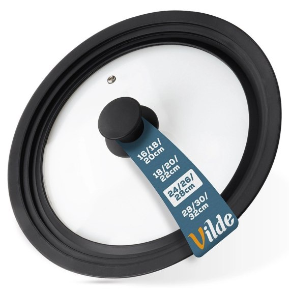 Pokrywka pasująca do garnków i patelni o średnicy 24, 26 oraz 28 cm. Zastępuje trzy osobne pokrywki, co pozwala zaoszczędzić miejsce w kuchni. Wyposażona w silikonową obręcz, która gwarantuje szczelność oraz chroni ranty naczyń. Została wyposażona w silikonową obręcz, która gwarantuje szczelność oraz zabezpiecza ranty naczyń. Pokrywka ma wymiary zewnętrzne 29,5 x 5,5 cm.
