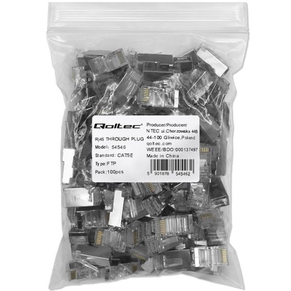 Wysokiej jakości zestaw metalowych złączy RJ45 o przelotowej konstrukcji w systemie Pass Through, kompatybilnych z kablami patchcord FTP Cat5e. Złącze posiada metalowe styki pokryte pozłacaną warstwą w celu zapewnienia lepszej przewodności i ochrony przed korozją. Idealne do zastosowań w telekomunikacji, instalacji sieci komputerowych lub do podłączania różnego rodzaju urządzeń wymagających obsługi sieci. Szczególnie przydatne w przypadku instalacji, gdzie istnieje potrzeba szybkiego i łatwego podłączania kabli. Pamiętaj, aby wtyki i kable były zgodne pod względem kategorii, aby zapewnić optymalną wydajność sieci.