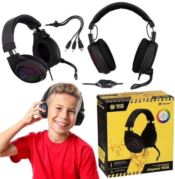 SŁUCHAWKI TRACER GAMEZONE ALIGATOR RGB rainbow LED