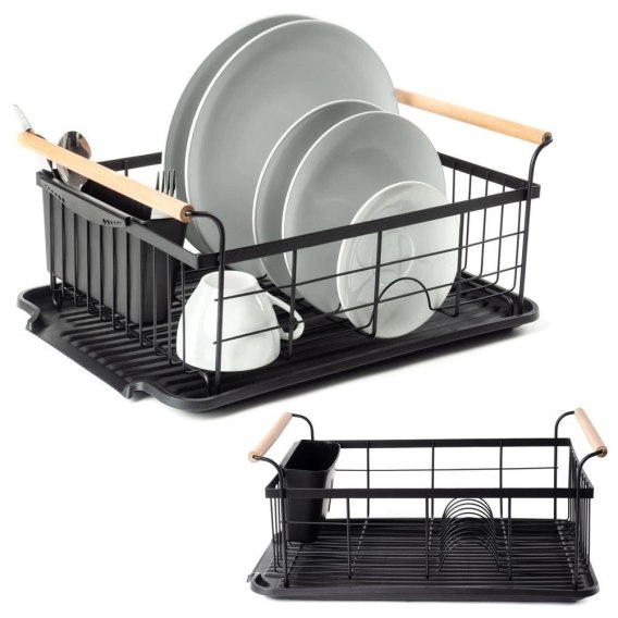 Suszarka do Naczyń na Talerze Sztućce Pojemna Czarna VILDE 42,5x29,5x19 cm