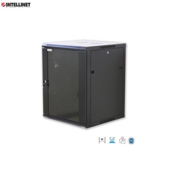 Szafa wisząca, zmontowana Intellinet 15U, 600x600, Rack 19", szklane drzwi, czarna