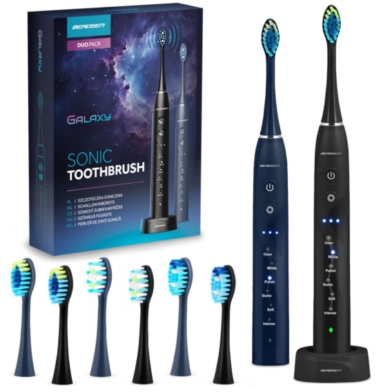 Szczoteczka soniczna do zębów zestaw 2 szt. Berdsen Galaxy Duo elektryczna + stacja dokująca