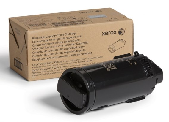 Toner w kolorze czarnym. Dedykowany do urządzeń Xerox VersaLink C500/C505. Wydajność wynosi 12100 stron.