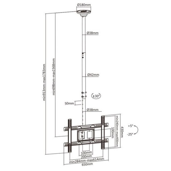 Uchwyt sufitowy do telewizora Maclean MC-803 (sufitowy; 23" - 100"; max. 50kg)