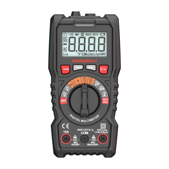 Uniwersalny miernik cyfrowy Ermenrich Zing TC13 to wielofunkcyjne przenośne narzędzie do testowania sieci elektrycznych i pomiaru charakterystyki sygnału elektrycznego. Urządzenie jest przeznaczone do profesjonalnego użytku dla pracowników technicznych, ale może być również przydatne podczas prac wykonywanych w domu. Oprócz napięcia, natężenia i rezystancji, Ermenrich Zing TC13 może mierzyć pojemność elektryczną, częstotliwość i cykl pracy.