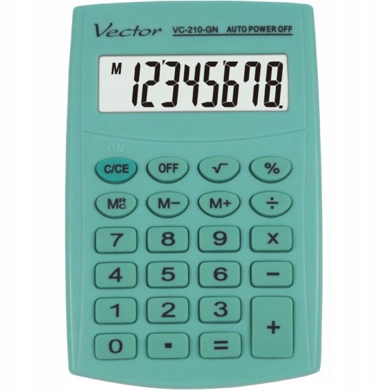 Vector Kalkulator kieszonkow KAV VC-210 GN, 8- cyfrowy ,64x98,5mm, jasnozielony