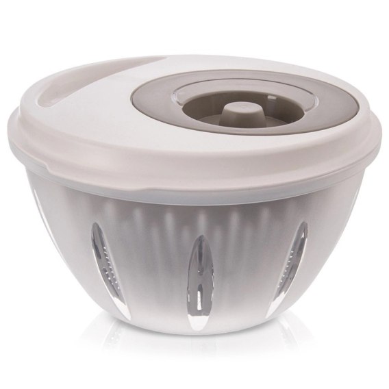 Praktyczna suszarka do sałaty to narzędzie przydatne w każdym domu. Ułatwia przygotowywanie świeżych sałatek i innych potraw z warzywami liściastymi. Sprawdzi się także do suszenia warzyw, owoców czy ziół. Wirówka znacznie skraca czas suszenia sałaty w porównaniu z tradycyjnym osuszaniem ręcznikiem papierowym. Dzięki pokrętłu w pokrywie, usunięcie nadmiaru wody z sałaty jest szybkie i skuteczne.