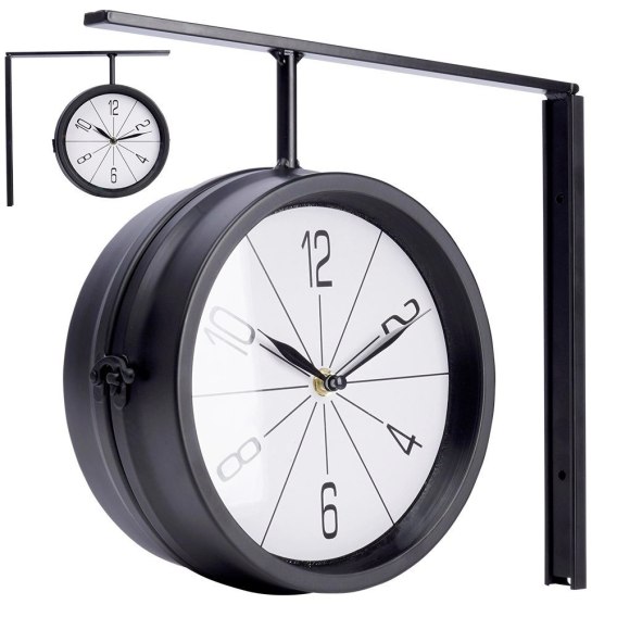 Zegar ścienny metalowy czarny dwustronny 30,5x9,5x28 cm