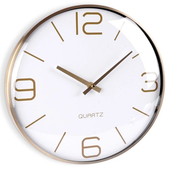 Zegar ścienny w złotej ramie. Posiada klasyczny design. Pięknie będzie prezentował się w każdym wnętrzu. Zegar może być świetnym pomysłem na prezent np. z okazji parapetówki lub urodzin. Klasyczny styl zegara stanowi dopełnienie każdej aranżacji wnętrza. Utrzymany w modnej kolorystyce. Z jego pomocą w łatwy sposób odczytamy godzinę.