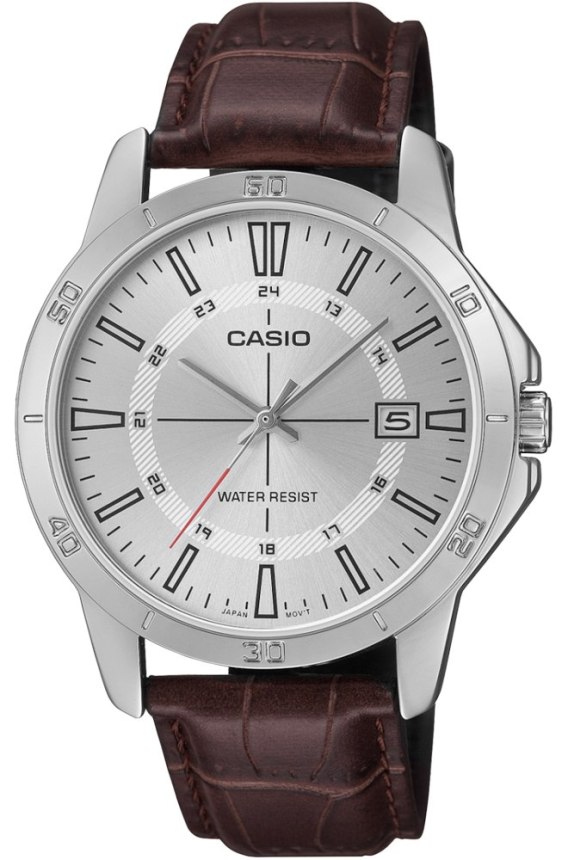 Klasyczny zegarek analogowy CASIO zaprojektowany w oparciu o ponadczasowy wygląd wskazówek godzinowej, minutowej i sekundowej — idealny zarówno na co dzień, jak i na bardziej formalne okazje. Srebrna tarcza z subtelnym, koncentrycznym wzorem zawiera pierścień z 24-godzinnym formatem czasu, a czerwona wskazówka sekundowa dodaje całości dynamicznego, sportowego akcentu. Smukłe indeksy liniowe oraz praktyczny datownik z dniem tygodnia na godzinie 3 łączą stylowy wygląd z funkcjonalną wygodą. Wodoodporność na potrzeby codziennego użytkowania pozwala czuć się swobodnie podczas mycia rąk czy w deszczową pogodę. Prosty, elegancki akcent, który dopełnia każdy styl.
