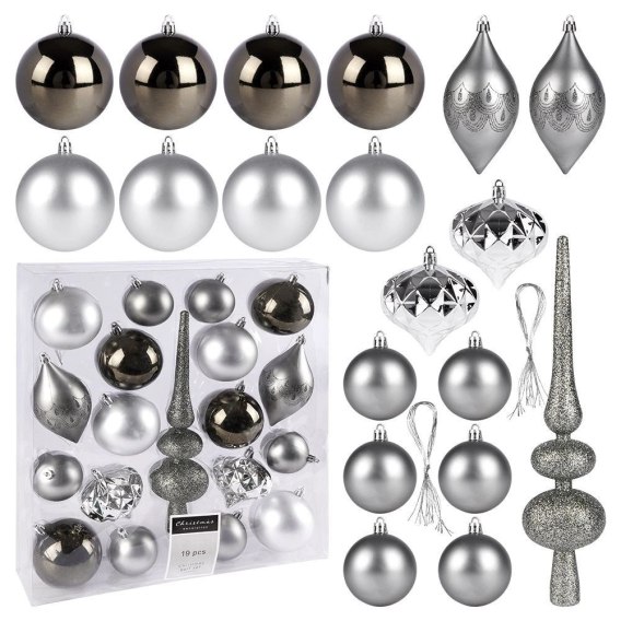 Zestaw Bombki Choinkowe Świąteczne Srebrne Nietłukące Solidne VILDE 19 szt.