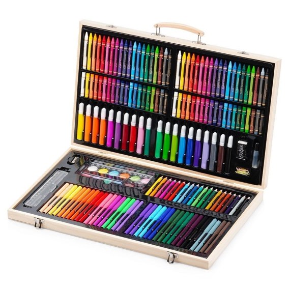 Zestaw artystyczny do malowania w drewnianej walizce 180 el.